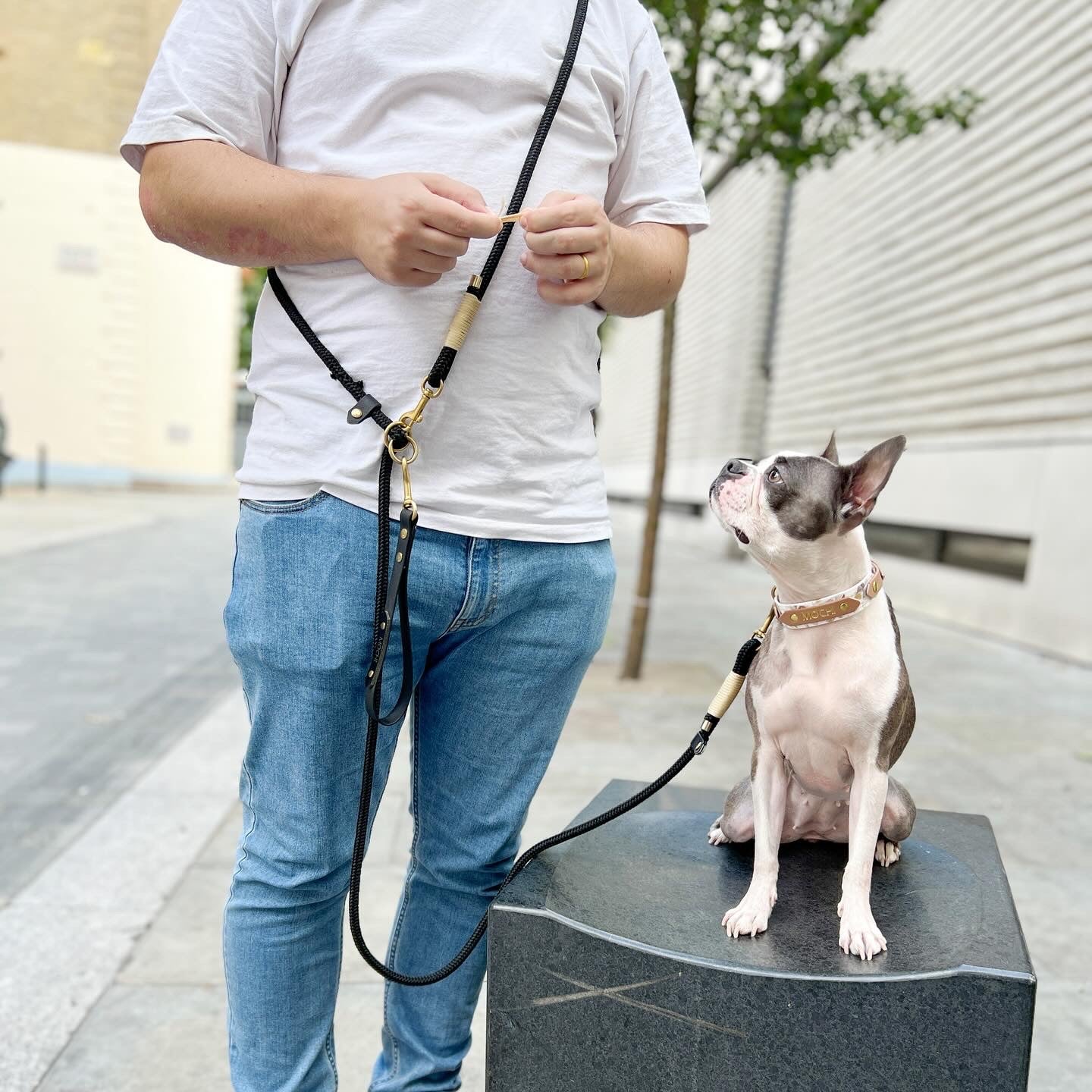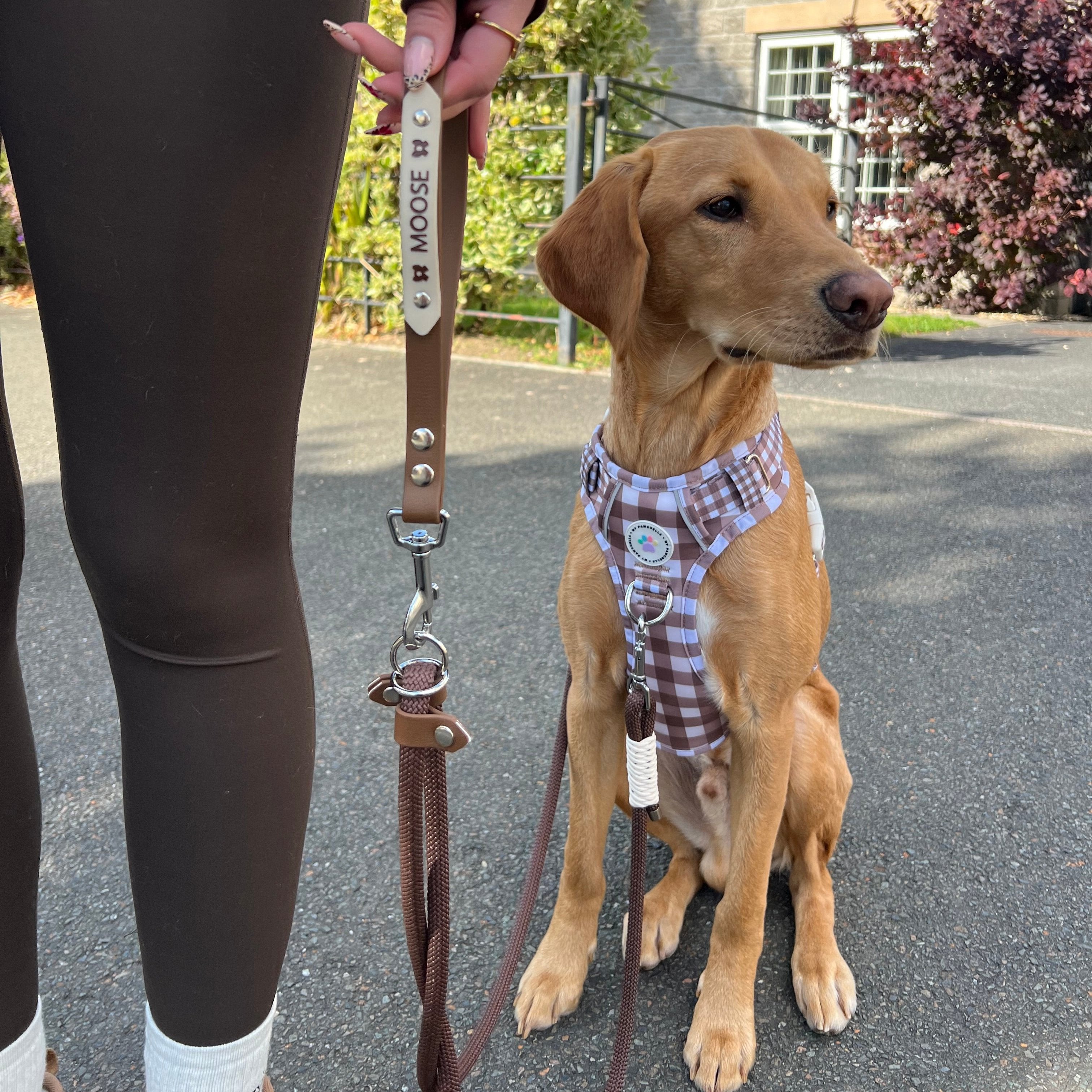 Fashion meets function. Tie your dog securely using the tether feature.